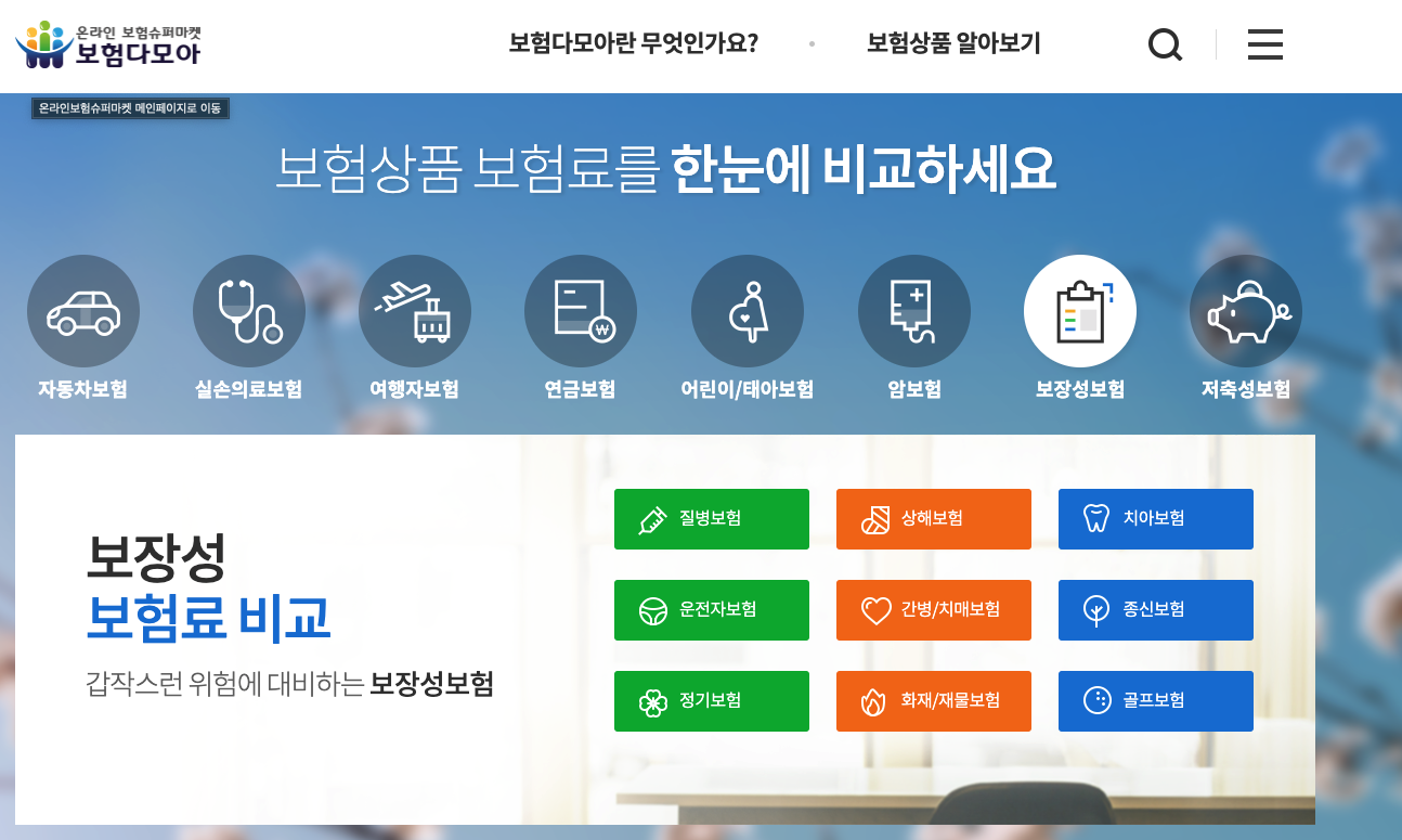1) 보험다모아 (https://e-insmarket.or.kr/) 비교